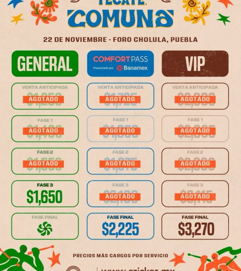 ¡Estamos cada vez más cerca de la séptima edición del Tecate Comuna! La mayor concentración de música latina en la ciudad de Cholula en Puebla nos recibirá el sábado 22 de noviembre con un excelente cartel integrado por bandas como Molotov, Panteón Rococó, Mago de Oz, y artistas como Julieta Venegas, Khea y Andrés Obregón.