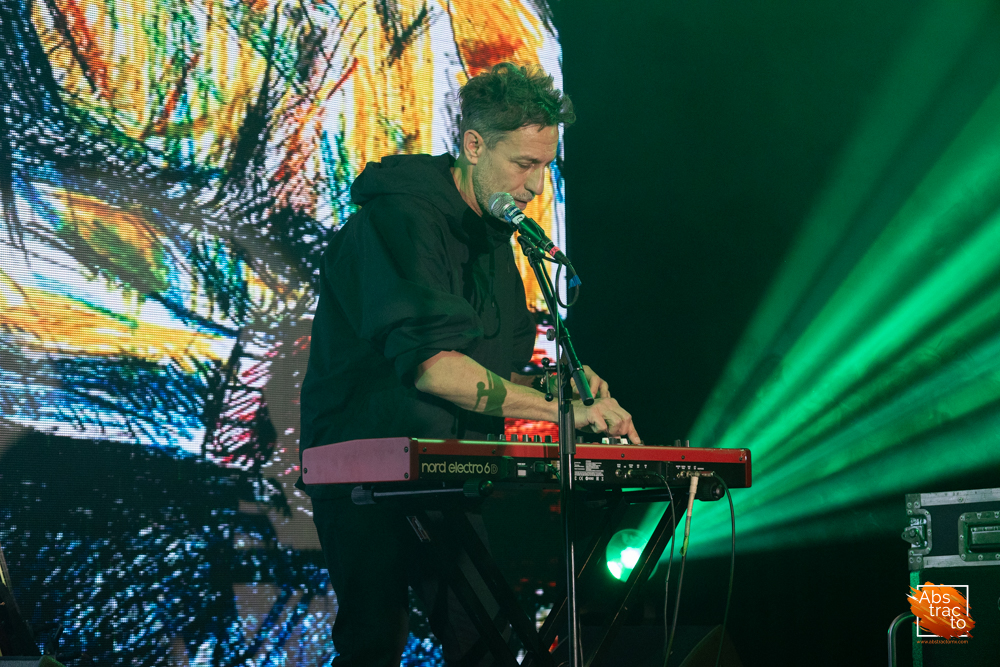 Con el ambiente ya encendido, llegó el turno de Estelares, quienes subieron al escenario en medio de una ovación que anticipaba la intensidad de lo que estaba por venir. El arranque fue contundente con “Doce Chicharras”, “Solo por hoy” y “Los Lobos”, la canción que da nombre a su más reciente álbum. Desde ese momento, la banda dejó claro que la velada sería un recorrido entre su nueva propuesta y aquellos clásicos que forman parte de la memoria colectiva de sus seguidores.